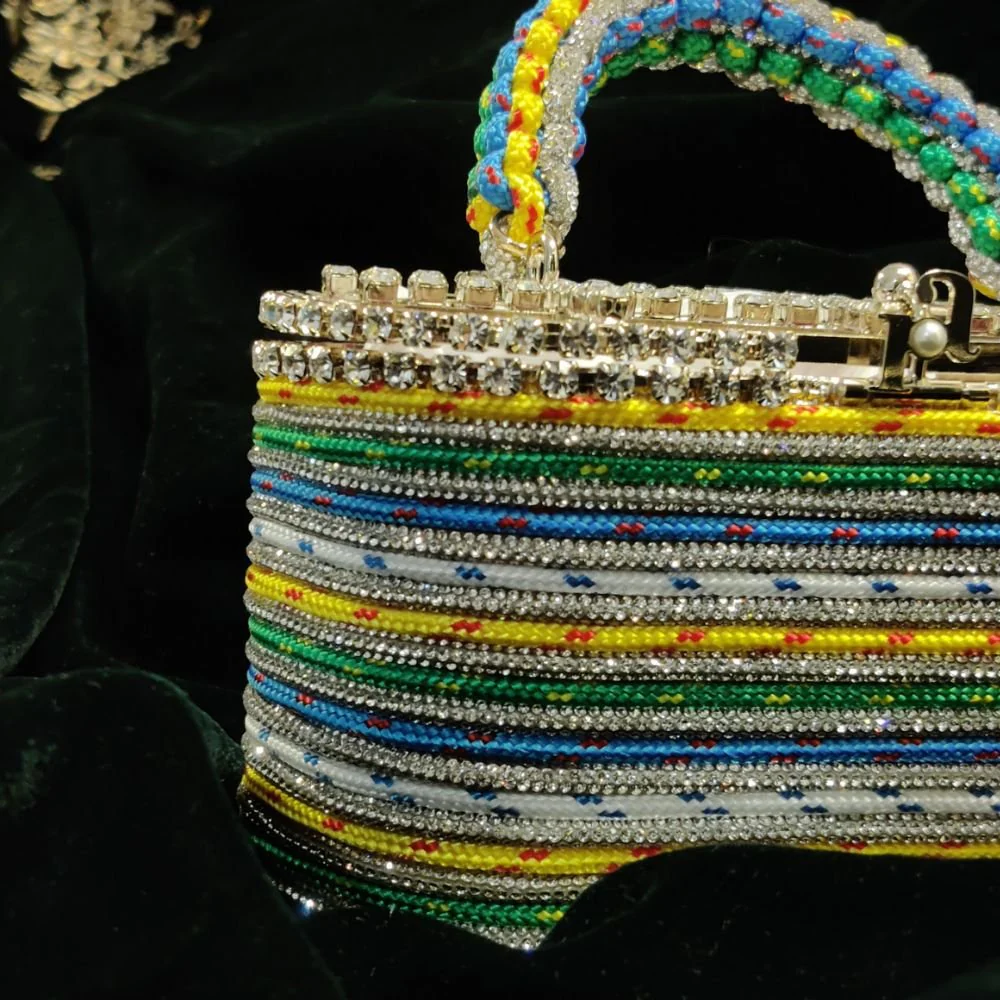 The Mini Holli Roccia Bag features a refined mix of tonal crystals set within Rosantica’s signature metal cage. Wear it with classic black or jewel-toned evening wear for an elevated, artful finish.